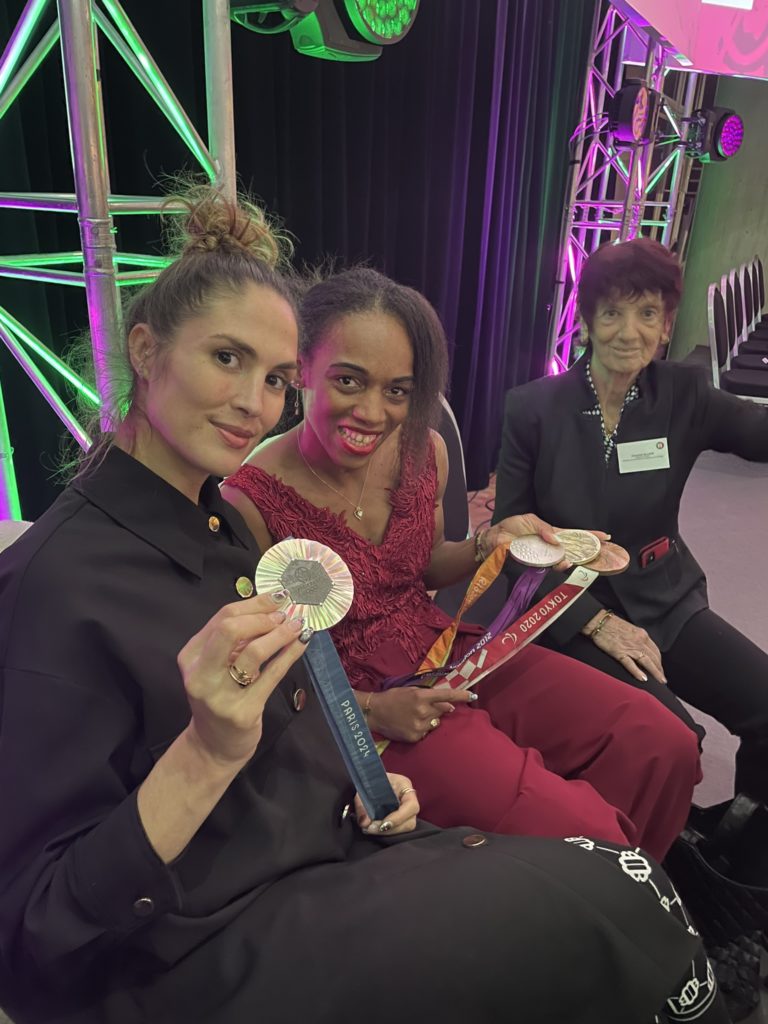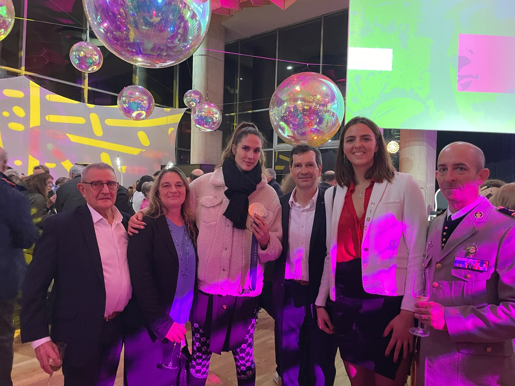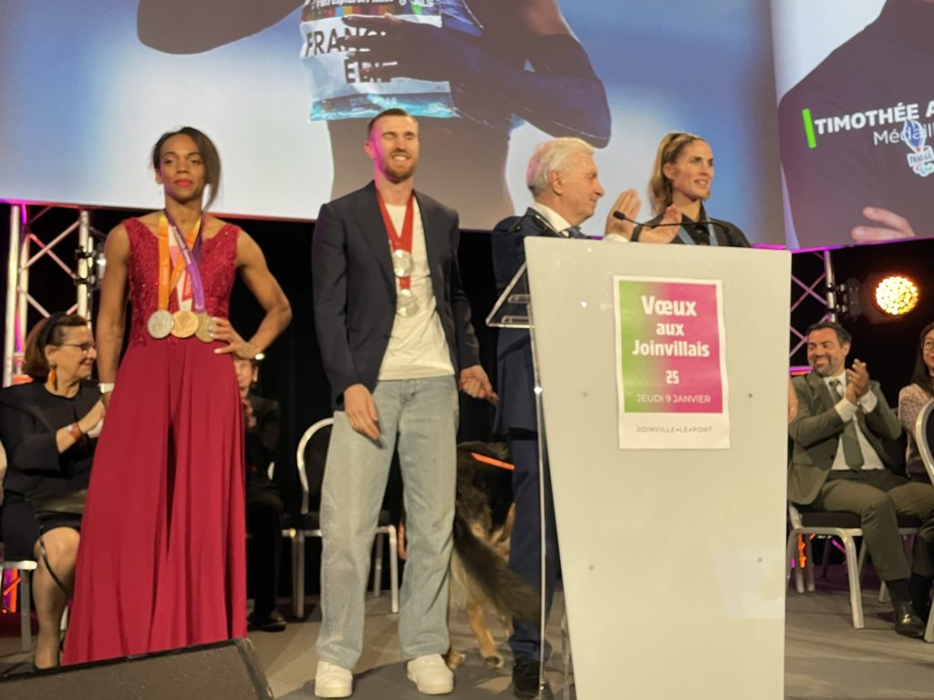 De nombreuses Joinvillaises et nombreux Joinvillais ont répondu présents à l’invitation d’Olivier Dosne et de son équipe municipale notamment certains membres du Comité régional de Paris Ile de France dont le Commandant Emmanuel Lagarde, Chef de Bataillon, Commandant le Bataillon d’Antibes et officier des sports de l’EIS représentant le Général Paul Sanzey, l’athlète Pauline Rossignol-Tollard, la présidente du Comité Régional Valérie Canton-Poublet représentant Bertrand VITU président de la Fédération Nationale des Joinvillais, la trésorière du Comité Régional Elisabeth Niklaszewski, le porte-drapeau francilien Christian Liénard, Alain Mérigot, membre du Conseil d’administration, Fabrice Halipré, Joinvillais et président d’Artistes Sportifs de Cœur, Virginie Tollard, Adjointe au Maire de Joinville le Pont déléguée à la Vie Scolaire et Périscolaire, l’ancien Commandant du Bataillon de Joinville François Sentagne. La soirée a mis en avant les actions de la Ville, du passage de la flamme olympique portée notamment par Christian Liénard, la mise à l’honneur de 4 athlètes Joinvillais dont 2 championnes, membres de l’armée de champions – Bataillon de Joinville, Elodie Clouvel (pentathlon moderne) et Mandy François-Elie (para-athlétisme Sprint T37) aux côtés du champion paralympique Timothée Antoine (athlétisme catégorie T11) et Alexandra Louis-Marie (Escrime épée).